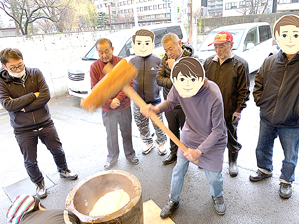 プラザあすなろ入所者と一緒に、青森地区保護司OB会の皆さんが中心となって、餅つき会を行いました。
