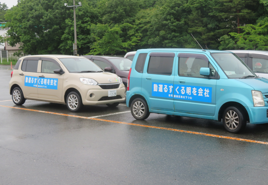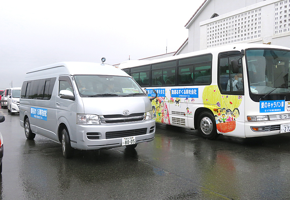 「第73回社会を明るくする運動」に伴う「内閣総理大臣」と「青森県知事」からのメッセージ伝達で「下北一周愛のキャラバン隊」の移動に大活躍された“むつ市提供の福祉バス”と“先導の広報車”